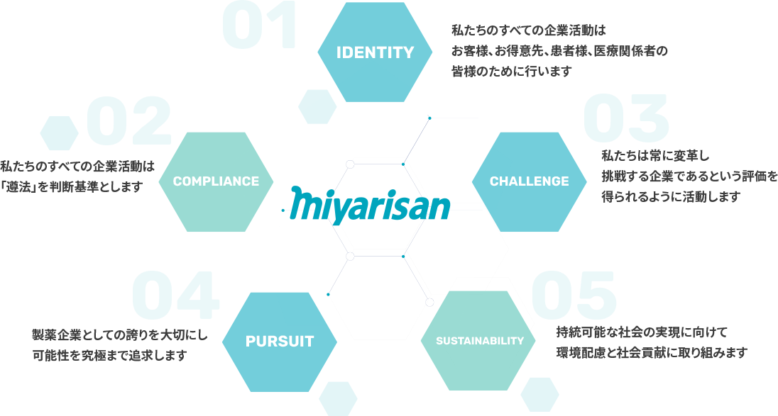 ミヤリサン製薬では、会社の進む方向や明確な達成目標として「VISION」を掲げ、